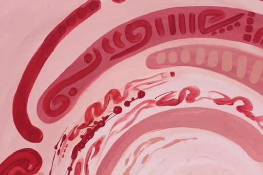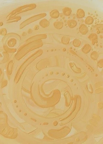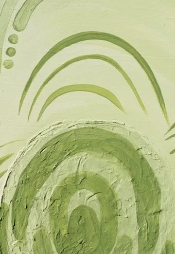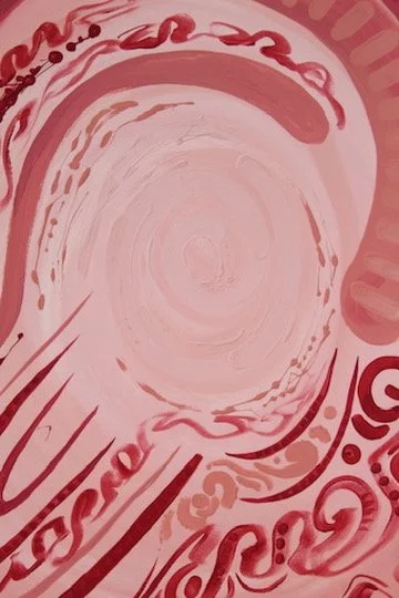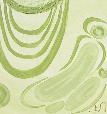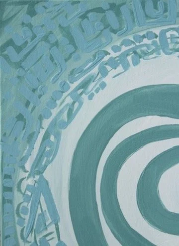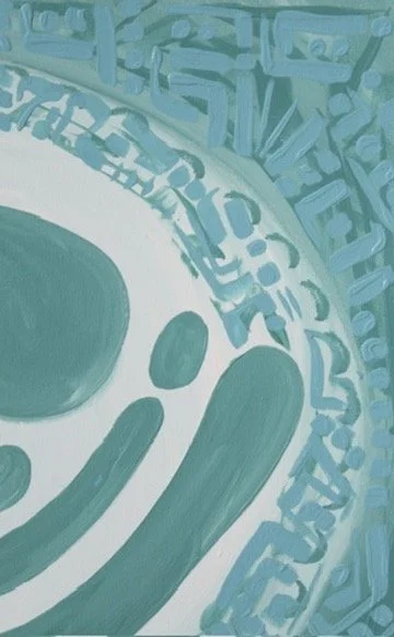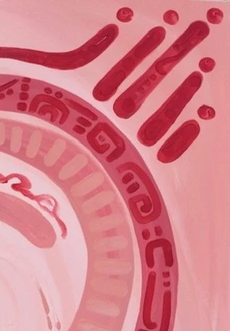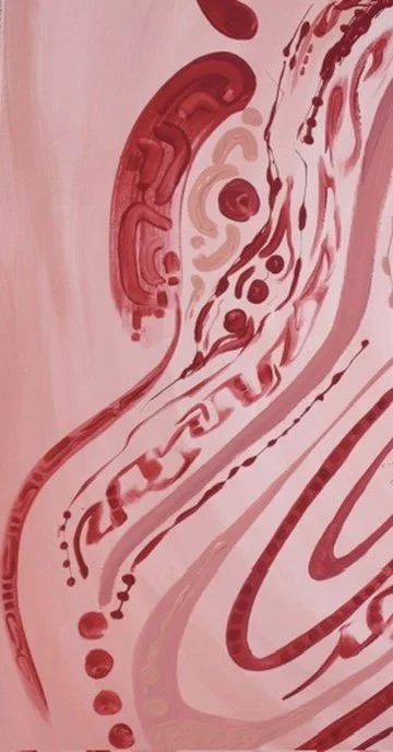 Feeling blue is about the initial stage of a breakup, unsure how to move forward I cocooned myself to the world, returning back to myself. The darker brush strokes underneath represent the pain trying to pierce my bubble while the lighter cell-like forms are seen as the emerging stages of healing. Relearning how to protect myself.