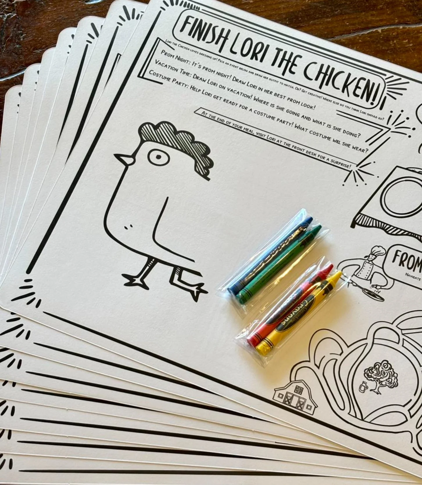 Discovered the restaurant’s chicken mascot that gives out chocolate eggs and re-centered the drawing activity around this playful, memorable character.