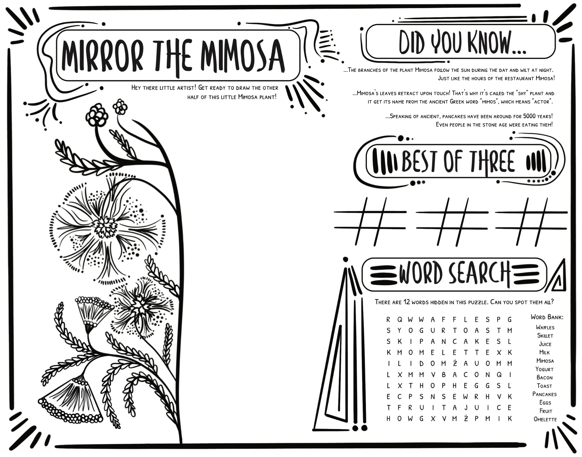 A client from Mimosa’s Breakfast and Brunch reached out to me to revamp their kids' activity sheet for a more engaging experience.